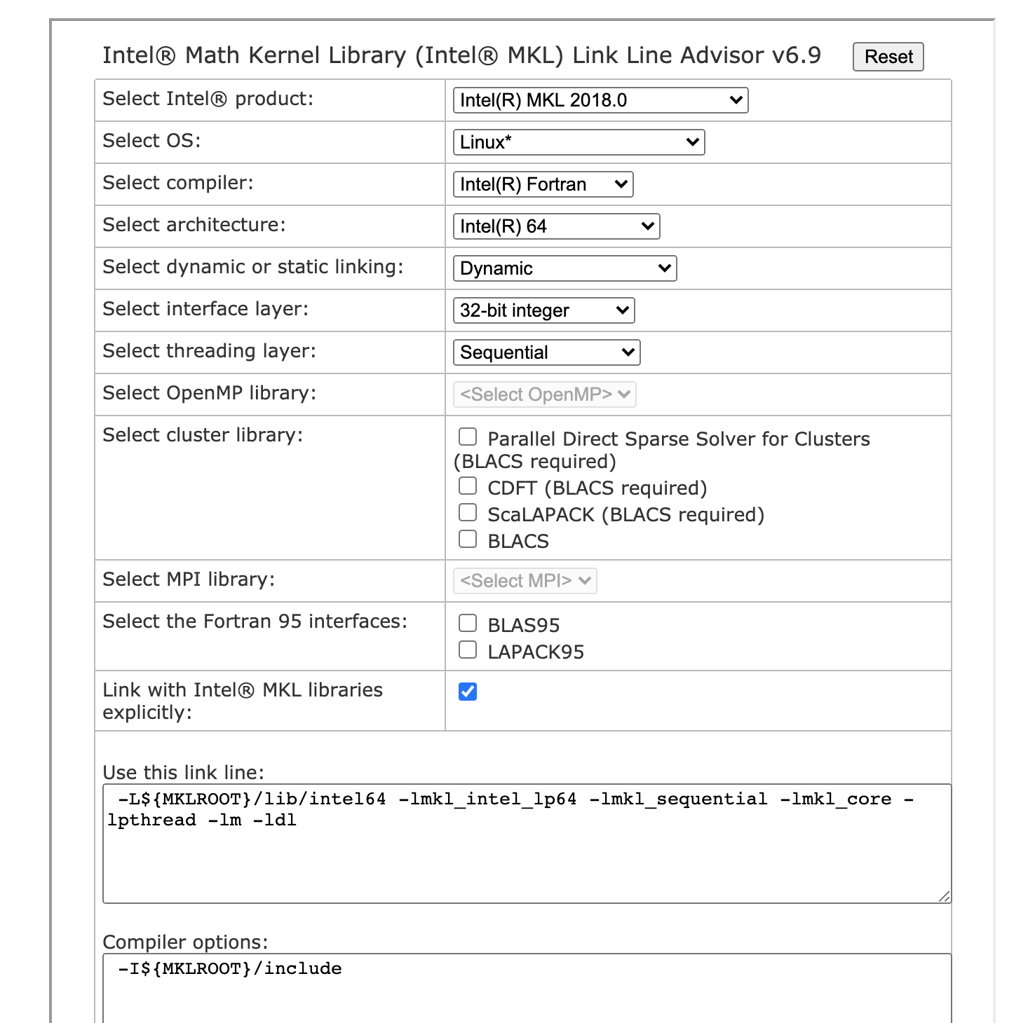 in the mkl-link-line-advisor interface