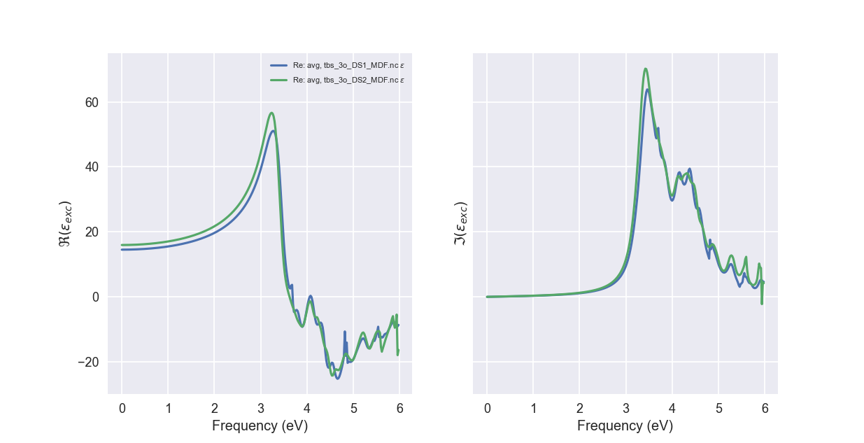 The results obtained with (bs_loband = 4, nband = 5) are clearly unconverged as the basis set contains too few transitions that are not able to describe the frequency-dependence of the polarizability in the energy range under investigation. For a converged spectrum, we have to include the three higher occupied states and the first four conduction bands (the blue curve corresponding to bs_loband = 2, and nband = 7).