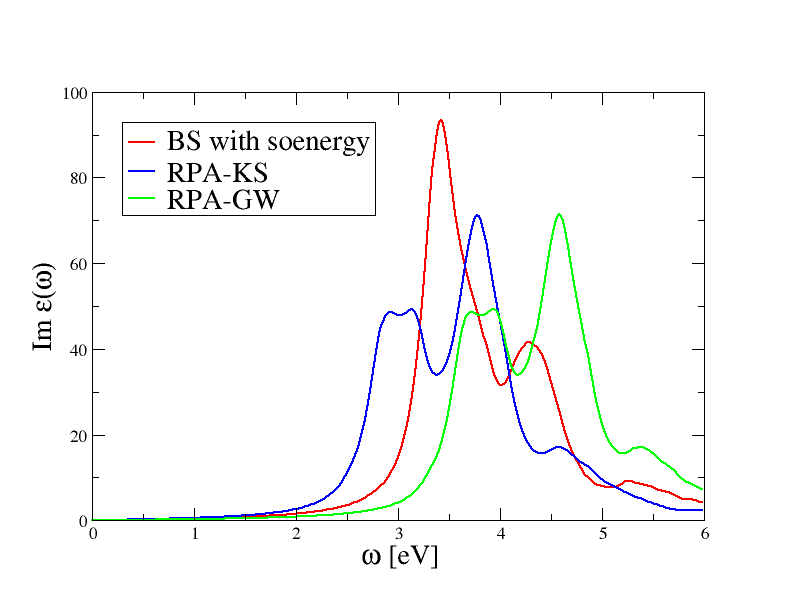 Note that this value is smaller than the one required to converge the QP corrections within 0.01 eV (in the first GW tutorial of the GW tutorial we obtained 6.0 Ha). This is a general behavior, in the sense that Bethe-Salpeter spectra, unlike GW corrections, are not very sensitive to truncations in the planewave expansion of W. Reasonable BS spectra are obtained even when W is treated within the diagonal approximation or, alternatively, with model dielectric functions.