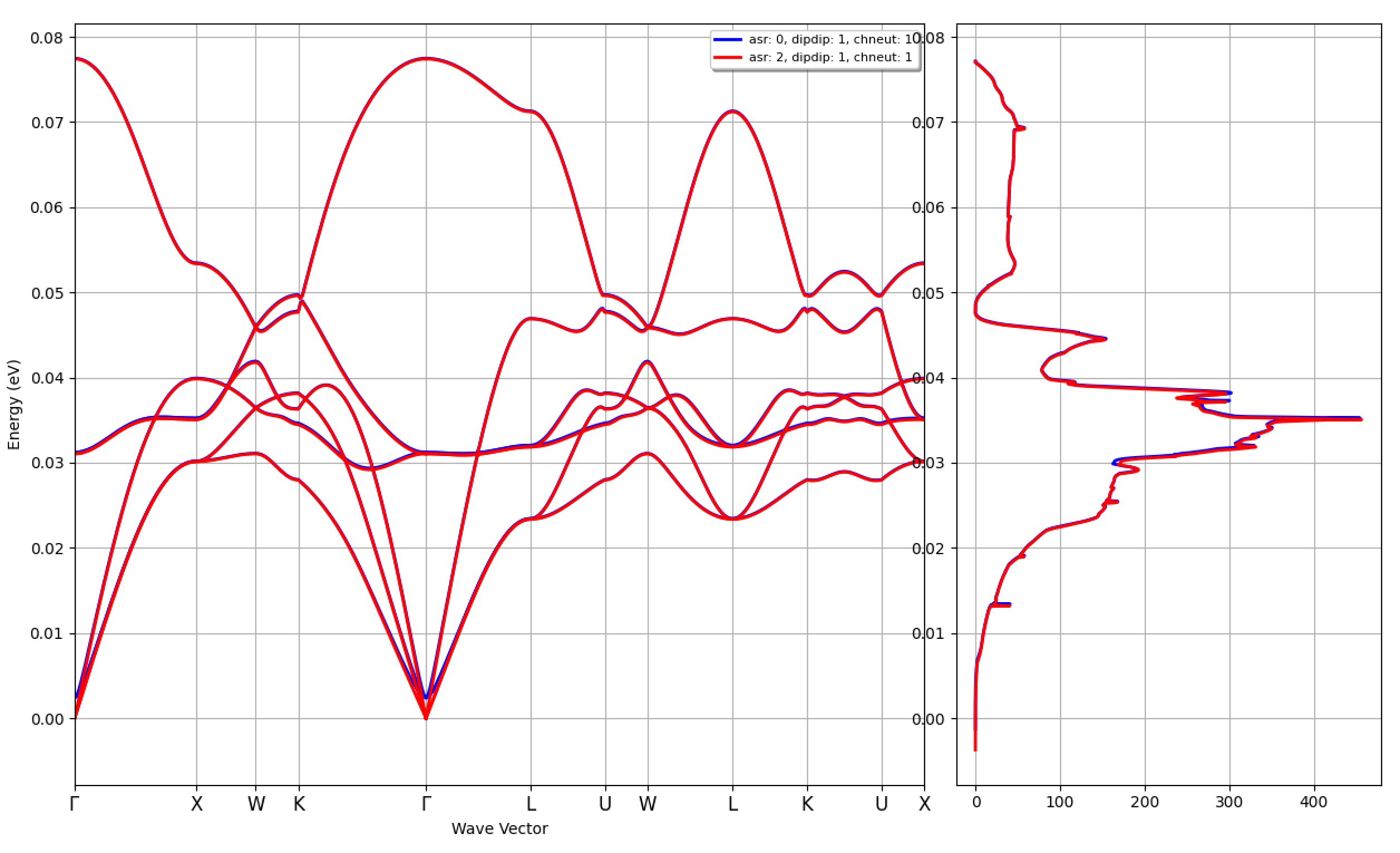 Note that several parameters have been tuned to reach a reasonable compromise between precision and computational cost so do not expect the results obtained at the end of the lesson to be fully converged. More specifically, we use norm-conserving pseudopotentials with a cutoff energy ecut of 30 Ha (too low, it should be ~45 Ha). The DFPT computations is done for the set of irreducible \(\qq\)-points corresponding to a \(\Gamma\)-centered 3x3x3 \(\qq\) mesh (again, too coarse, it should be 6x6x6 for ab initio \(\mathbf{k/q}\)-meshes). \(\bm{Z}^*\) and \(\bm{\ee}^\infty\) are also computed with the same underconverged settings.