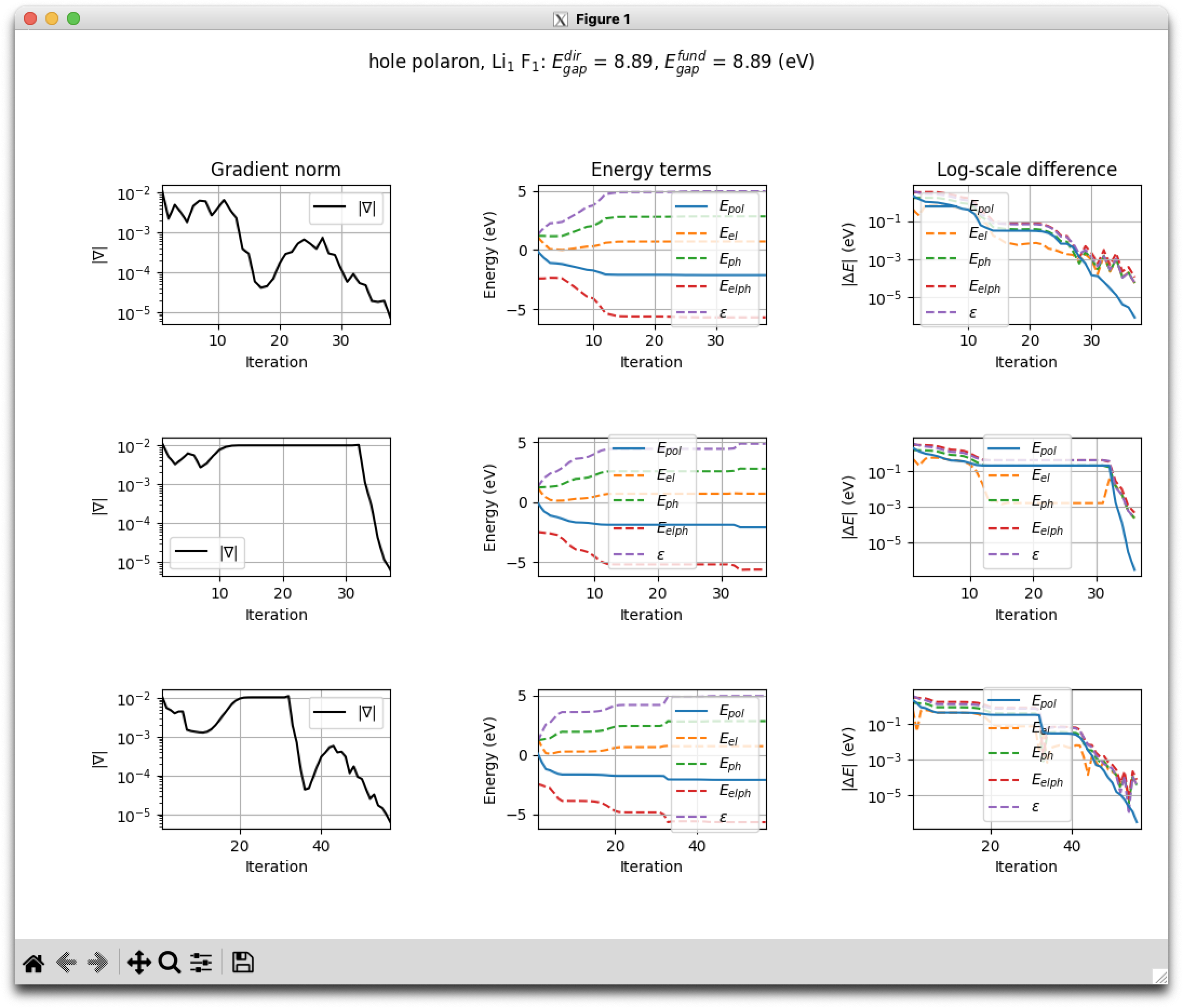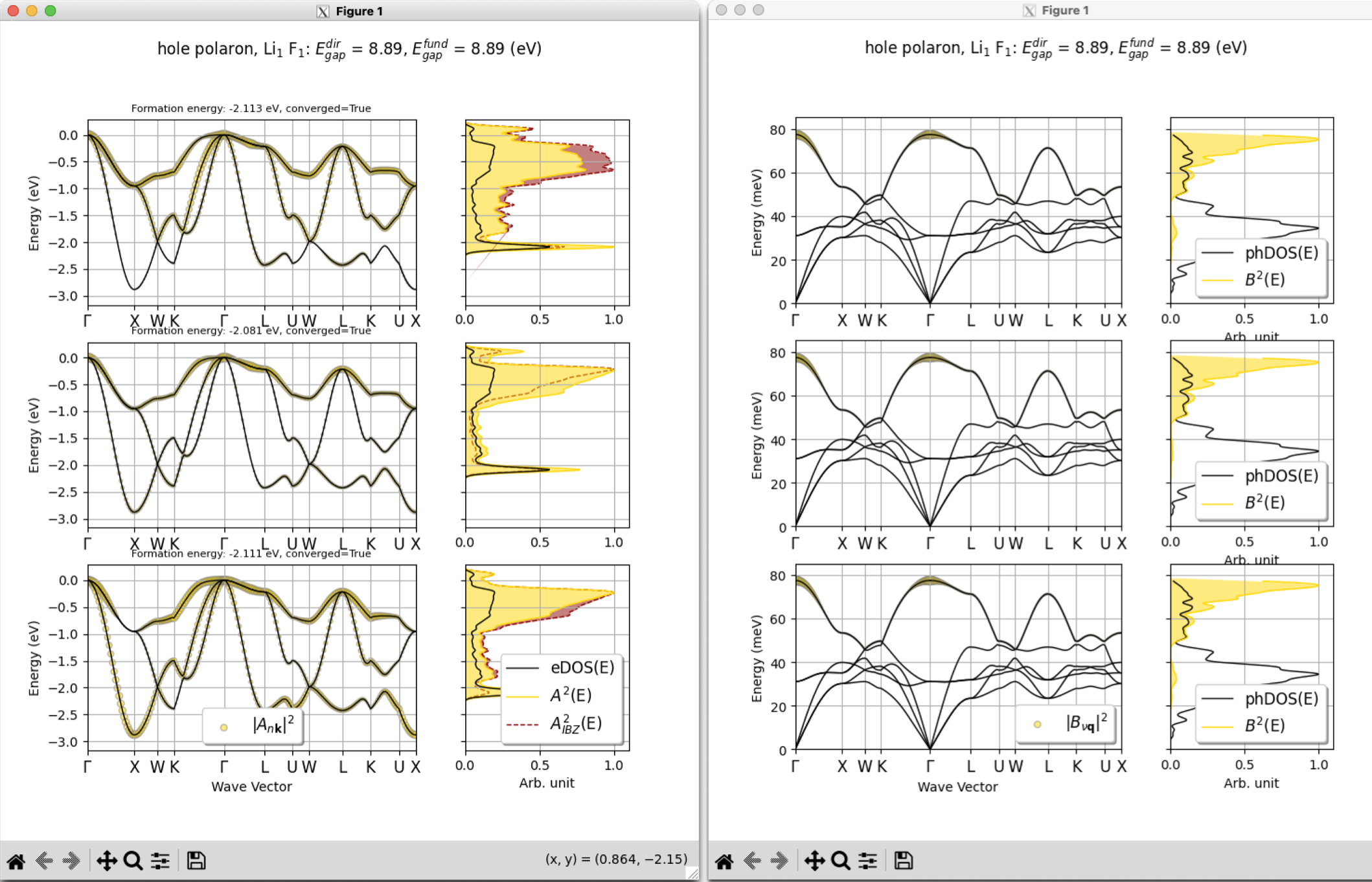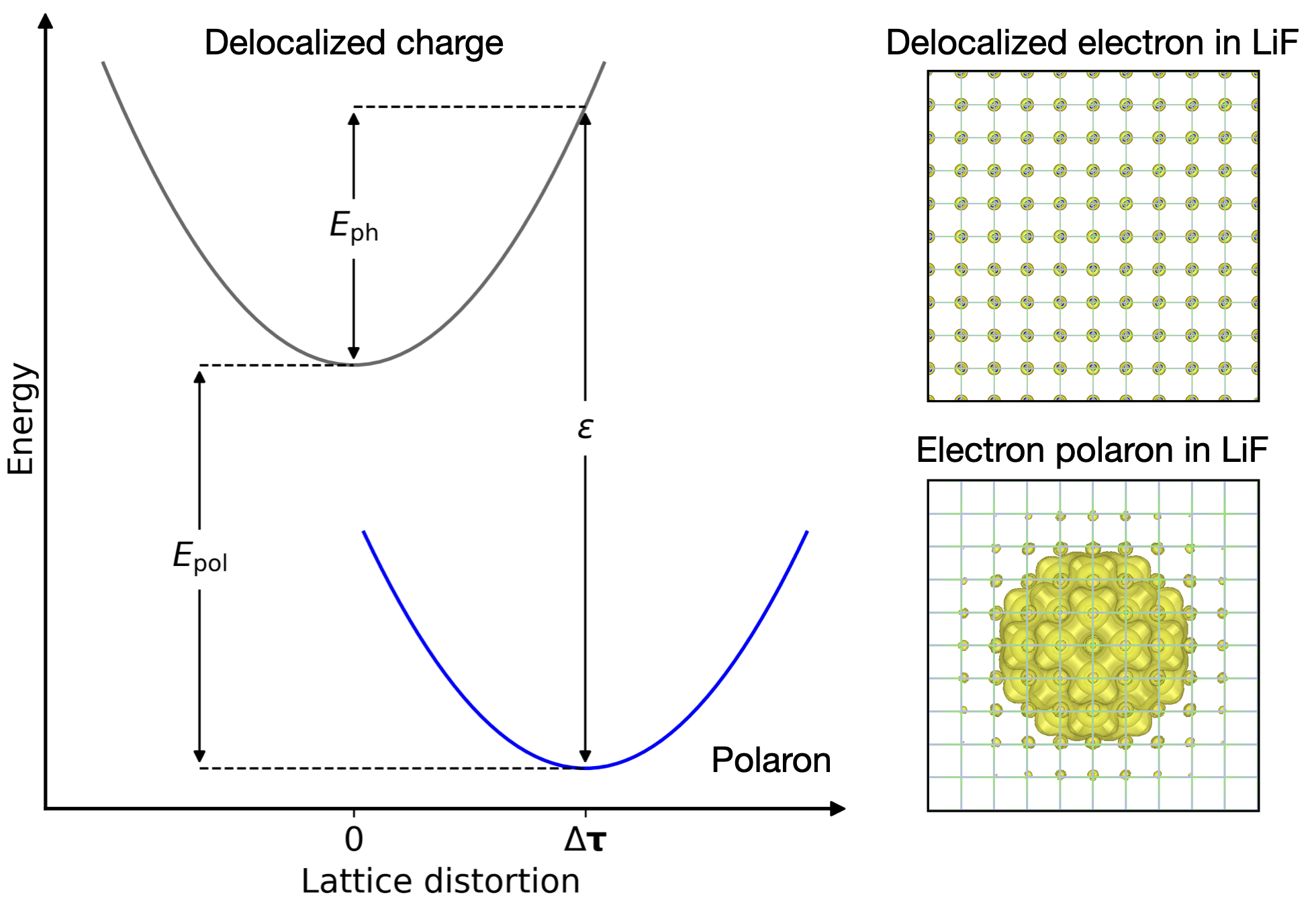 This figure also contains some foreshadowing as it uses LiF to illustrate both configurations of an extra electron in the system: delocalized and polaronic one. By the end of the tutorial, the user will learn how to generate such figures themselves.