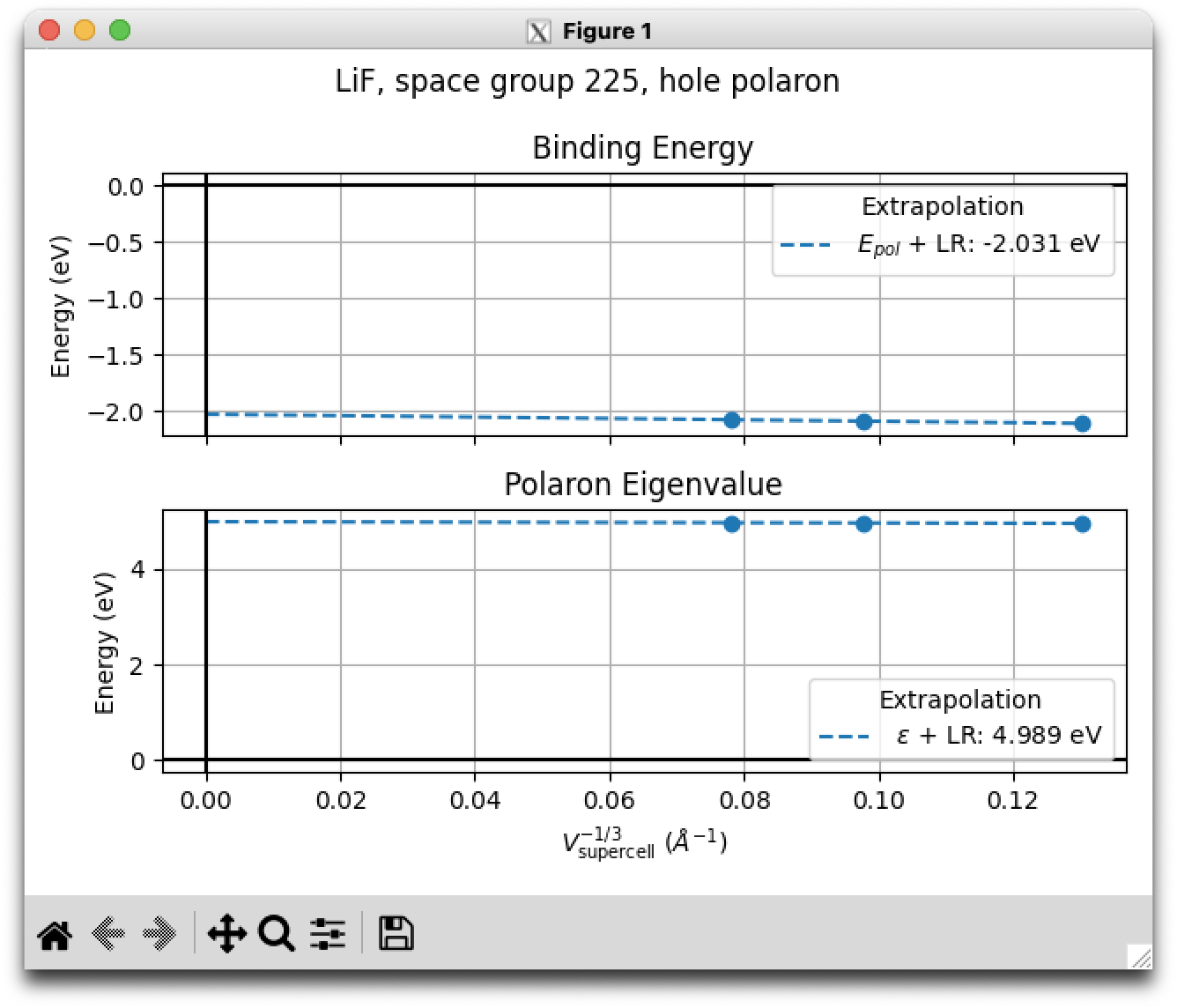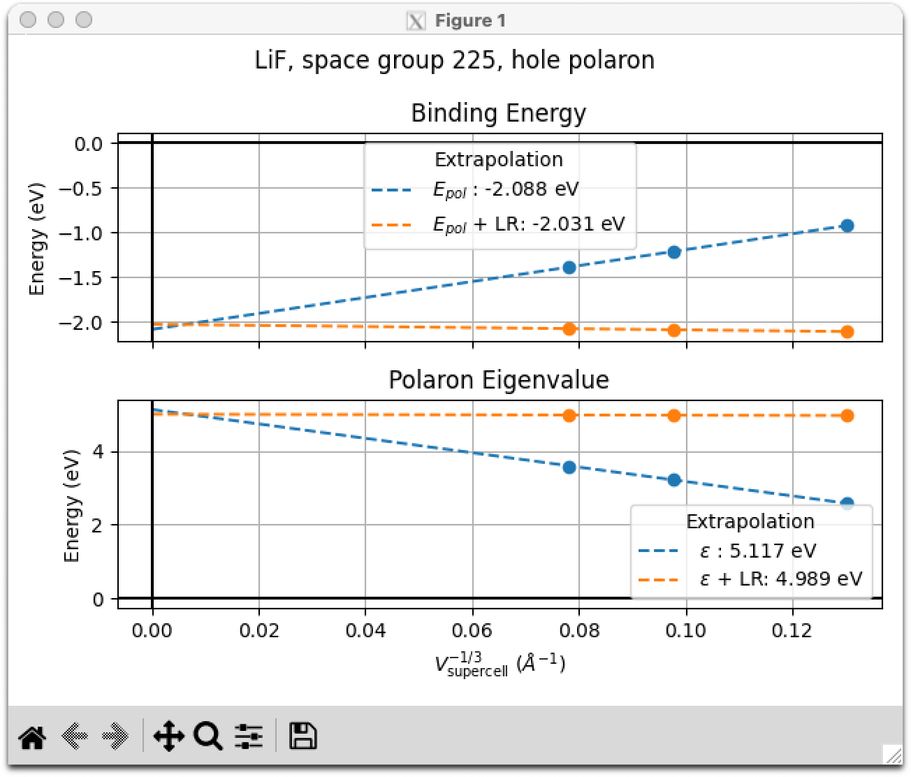 Note that there is no computation of quadrupoles \(\boldsymbol{Q}\), as we use LiF as a prototypical insulator for polaron calculations. In systems with Fm\(\overline{3}\)m space group, \(\boldsymbol{Q} \equiv 0\) by symmetry.
