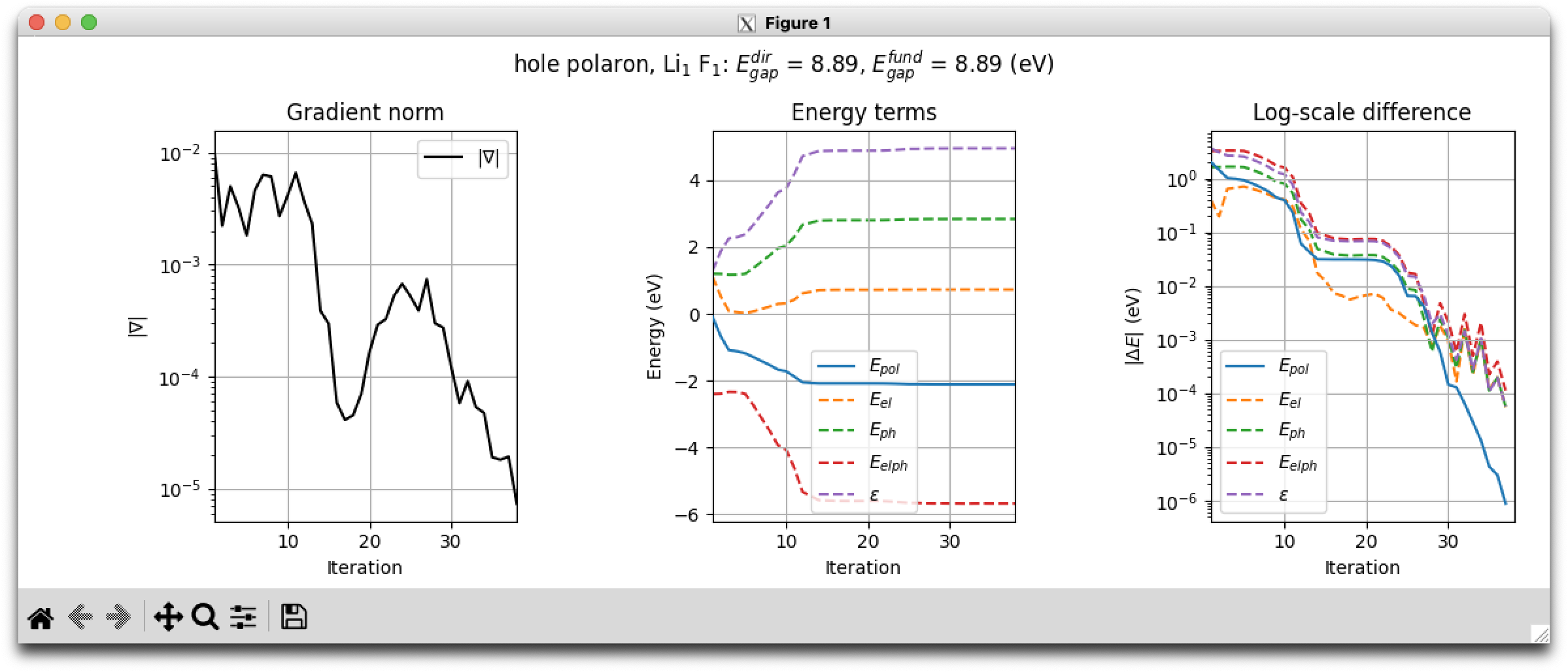 During the tutorial, the aforementioned quantities and other properties, characterizing the polaron formation, are computed within a Variational Polaron Equations, implemented in ABINIT.