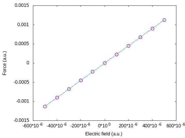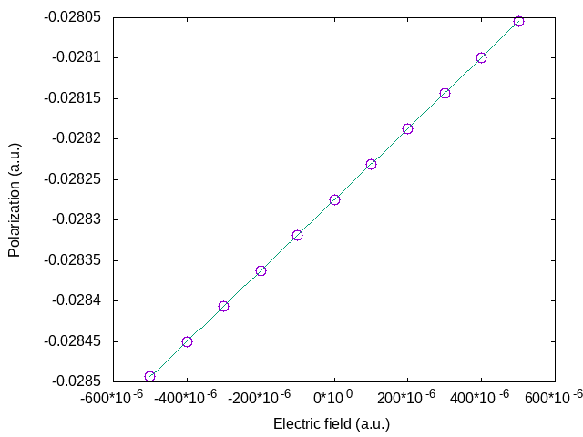 As these calculations are quite long, the input file has been limited to a small number of small fields. Three cases have been selected: \(E = 0\), \(E = +0.0001\) and \(E = -0.0001\). If you have time later, you can perform more exhaustive calculations over a larger set of fields.